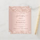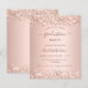 Um convite feminino e glamouroso para uma festa de formatura. Glamoroso com elegante e moderno fundo metálico de aparência falsa, rosa, e decorado com poeira brilhante de rosa dourado. Personalize e adicione um nome e detalhes da parte. O texto Graduação e o nome são escritos com um script de estilo manuscrito moderno. Texto rosa dourado escuro. Traseira: fundo rosa dourado e gotas de brilho.