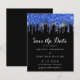 Convide seus amigos e família para comemorar seu dia especial com esses pingos de brilho preto, prata e azul para salvar a data do convite de casamento. Personalize com seus nomes e todas as suas informações de casamento. Esta coleção temática de casamento e polícias da polícia será favorita entre todos os policiais, esposas policiais e polícias. COPYRIGHT © 2020 Judy Burrows, Black Dog Art - Todos Os Direitos Reservados. Glitter De Prata Azul De Orçamento Reduz A Data