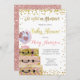 Chá de fraldas de Aventura Convite à Glitter Dourada Glitter Dourada com bela falso rosa de ouro e confete de ouro