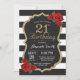 Rosa vermelha aniversário de 21 anos de Convite Dourado Glitter. Convidar Festa de aniversário Preta e Dourada. Dourada Glitter. Black and White Stripes. Chalkboard. Digital Imprimível.