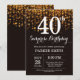 Surpreenda o aniversário de 40 anos Invitation com luzes de sequência Douradas com fundo de luz Dourada. Dourado Aniversário. Aniversário Adulto. Homens ou Mulheres no Dia Convidam. 13 15 16º 18º 20 21rua 30 40º 50º 60º 80 de 70 100º, qualquer idade. Para mais personalização, clique no botão "Personalizar" e use nossa ferramenta de design para modificar este modelo.