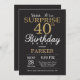 Convite para aniversário de 40 anos surpresa com Glitter Chevron Dourado. Chalkboard. Brilho preto e Dourado. Aniversário Adulto. O Dia do Homem ou da Mulher Convidam. Para mais personalização, clique no botão "Personalizar" e use a ferramenta design para modificar este modelo.