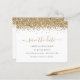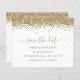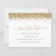 Um valor para o alternativo do ORÇAMENTO em tamanho menor de 4,5 x 5,6" de semirbrilho de 110 lbs, que é de espessura semelhante a um cartão postal (no entanto, não é adequado para uso como cartão postal). POR FAVOR, NOTE que existe UM por folha. Glitter Dourado do Script de Orçamento Salve a Data. Estilo de vírgula com uma borda falsa de brilho na parte superior de cada lado e um script elegante para o cabeçalho Salvar a Data. Personalize facilmente o texto. No verso, adicione seu código QR ao seu site de casamento substituindo o código QR na amostra. Você pode criar códigos QR gratuitamente on-line. Basta pesquisar "Criador de código QR" e muitas opções surgem para criar gratuitamente.