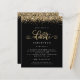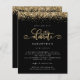 Dourada Diminuição De Qualquer Convite Preto De Festa de aniversário De Script De Idade. Um alternativo de 4,5 pol x 5,6 pol com preço inferior. Disponível em um STOCK DE CARTÃO SEMI GLOSS 110 lb, que é a opção padrão (recomendada para convites), OU um STOCK DE PAPEL THINNER SATIN FINISH 80 lb (ideal para gabinetes). Os envelopes são um extra opcional e são ligeiramente maiores que o tamanho da placa. Preto clássico e ouro com uma borda de brilho falsa de ouro no topo de cada lado, e Celebrar em uma escrita artística com traços elegantes. Personalize facilmente o resto do texto para seus próprios detalhes. Você também pode alterar as cores do texto e do plano de fundo por meio da opção personalizar mais, se desejar.