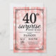 Surpreenda o aniversário de 40 anos Invitation com luzes cor-de-rosa com fundo brilhante rosa. Aniversário Rosa. Aniversário Adulto. Homens ou Mulheres no Dia Convidam. 13 15 16º 18º 20 21rua 30 40º 50º 60º 80 de 70 100º, qualquer idade. Para mais personalização, clique no botão "Personalizar" e use nossa ferramenta de design para modificar este modelo.