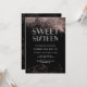 Jogue uma na moda Doce 16 Festas de aniversário com este simples e na moda preto convite com sotaques de brilho rosa.