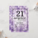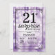 Convite para aniversário de 21 anos surpresa com luzes de cadeia roxas com fundo brilhante roxo. Aniversário Roxo. Aniversário Adulto. Homens ou Mulheres no Dia Convidam. 13 15 16º 18º 20 21 rua 30 40º 50º 80 de 60º 70 de 100º, qualquer idade. Para mais personalização, clique no botão "Personalizar" e use a ferramenta design para modificar este modelo.