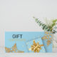 Design de férias de alta qualidade elegante com flocos de neve glamourosos de ouro brilhante e caixa de presentes sobre fundo azul claro. Esta certidão festiva é perfeita para a sua pequena empresa ou para oferecer amigos e família, especialmente para o Natal.
