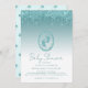 Convide os entes queridos em estilo com este convite de chá de fraldas cintilante com pingos de aspecto brilhante e adoráveis pés de bebês. Os sotaques falso e o fundo de turquesa ombré criam uma sensação glamourosa mas moderna, perfeita para celebrar a futura mãe. Personalize com o nome, os detalhes do evento e as informações do registro da honraria para uma apresentação uniforme e na moda. Ideal para chás de bebês, temas neutros em termos de gênero ou celebrações de jogos.