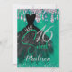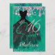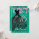Convite de aniversário verde-chic com gotas legal de prata e belas caligrafias de monograma.POR FAVOR, NOTA: Estes são gráficos impressos planos - sem brilho real, joias ou peças levantadas.