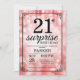 Surpresa aniversário de 21 anos Invitation com luzes de cordas vermelhas com fundo vermelho brilhante. Aniversário Vermelho. Aniversário Adulto. Homens ou Mulheres no Dia Convidam. 13 15 16º 18º 20 21rua 30 40º 50º 60º 80 de 70 100º, qualquer idade. Para mais personalização, clique no botão "Personalizar" e use nossa ferramenta de design para modificar este modelo.