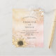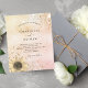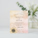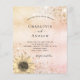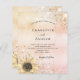 Um convite moderno, elegante e de casamento. Um rosa de ouro e um fundo metálico cor-de-rosa, cor-de-rosa, fino, decorado com ouro falso e poeira reluzente prateada e um girassol rústico. Personalize e adicione seus nomes e detalhes da festa. Letras pretas coloridas.