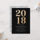 Comemore o formando no estilo enviando nossos convites para a festa de formatura Glitz e Glamor. Os convites modernos para festas de formatura apresentam "2018" em um estilo falso de brilho dourado com espaço para as informações de seu partido. O reverso dos convites apresenta um design de ponto preto e branco.