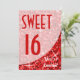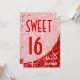 Convite com um design moderno com estrelas dispersas sobre uma forma estilizada de "aparência sequencial" curvada em tons de vermelho com 'Doce 16' 'Você é convidado' escrito em vermelho e branco. Pode ser usado como um fundo para o seu próprio texto, imagens e ideias. O texto pode ser facilmente alterado usando o modelo fornecido ou clique no botão 'Personalizar o texto' para fazer outras alterações. Observe que esta é uma imagem de arte digital impressa, ela não brilha ou contém cinzas ou sequências reais.