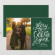 Este Cartões de foto de Natal apresenta um sentimento ilustrado manualmente de feriado "Glória a Deus no Máximo" em uma simples paleta de cores verde e branca. Esta design tem uma saudação religiosa bem conhecida. Você pode ajustar as cores ao seu gosto e tudo é totalmente personalizável, incluindo a foto e o nome.