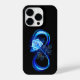 Luminous infinity symbol with glowing, beautiful, lushly blooming rose made of blue flames on black background.