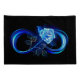 Luminous infinity symbol with glowing, beautiful, lushly blooming rose made of blue flames on black background.