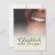 Glücklich, Dir, instinto! Kompliment Karte mit lachendem Frauengesicht und handschriftlichen Grüßen auf der Vorderseite der Karte. Restliche Flächen stehen zur freien Verfügung.