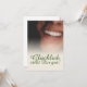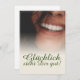 Glücklich, Dir, instinto! Kompliment Karte mit lachendem Frauengesicht und handschriftlichen Grüßen auf der Vorderseite der Karte. Restliche Flächen stehen zur freien Verfügung.