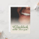 Glücklich, Dir, instinto! Kompliment Karte mit lachendem Frauengesicht und handschriftlichen Grüßen auf der Vorderseite der Karte. Restliche Flächen stehen zur freien Verfügung.
