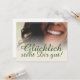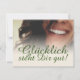 Glücklich, Dir, instinto! Kompliment Karte mit lachendem Frauengesicht und handschriftlichen Grüßen auf der Vorderseite der Karte. Restliche Flächen stehen zur freien Verfügung.