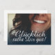 Glücklich, Dir, instinto! Kompliment Karte mit lachendem Frauengesicht und handschriftlichen Grüßen auf der Vorderseite der Karte. Restliche Flächen stehen zur freien Verfügung.