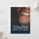 Glücklich, Dir, instinto! Kompliment Karte mit lachendem Frauengesicht und handschriftlichen Grüßen auf der Vorderseite der Karte. Restliche Flächen stehen zur freien Verfügung.