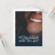 Glücklich, Dir, instinto! Kompliment Karte mit lachendem Frauengesicht und handschriftlichen Grüßen auf der Vorderseite der Karte. Restliche Flächen stehen zur freien Verfügung.