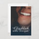 Glücklich, Dir, instinto! Kompliment Karte mit lachendem Frauengesicht und handschriftlichen Grüßen auf der Vorderseite der Karte. Restliche Flächen stehen zur freien Verfügung.