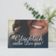 Glücklich, Dir, instinto! Kompliment Karte mit lachendem Frauengesicht und handschriftlichen Grüßen auf der Vorderseite der Karte. Restliche Flächen stehen zur freien Verfügung.