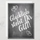 Kompliment Karte mit handschriftlichen Grüßen im Kreidetafelstil auf der Vorderseite der Karte. Restliche Flächen stehen zur freien Verfügung.
