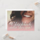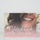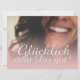 Glücklich, Dir, instinto! Kompliment Karte mit lachendem Frauengesicht und handschriftlichen Grüßen auf der Vorderseite der Karte. Restliche Flächen stehen zur freien Verfügung.