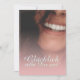 Glücklich, Dir, instinto! Kompliment Karte mit lachendem Frauengesicht und handschriftlichen Grüßen auf der Vorderseite der Karte. Restliche Flächen stehen zur freien Verfügung.