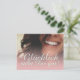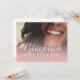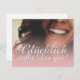 Glücklich, Dir, instinto! Kompliment Karte mit lachendem Frauengesicht und handschriftlichen Grüßen auf der Vorderseite der Karte. Restliche Flächen stehen zur freien Verfügung.