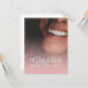 Glücklich, Dir, instinto! Kompliment Karte mit lachendem Frauengesicht und handschriftlichen Grüßen auf der Vorderseite der Karte. Restliche Flächen stehen zur freien Verfügung.