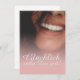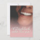 Glücklich, Dir, instinto! Kompliment Karte mit lachendem Frauengesicht und handschriftlichen Grüßen auf der Vorderseite der Karte. Restliche Flächen stehen zur freien Verfügung.
