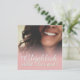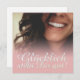 Glücklich, Dir, instinto! Kompliment Karte mit lachendem Frauengesicht und handschriftlichen Grüßen auf der Vorderseite der Karte. Restliche Flächen stehen zur freien Verfügung.