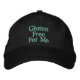 Slogan bordado de conscientização teal para doença celíaca vem no boné de bola para sensibilizar sobre a necessidade de comer uma dieta sem glúten. Gluten Free For Me Slogan.
