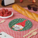 Gnomo Fofo com chapéu de Papai Noel e placa de Feliz Natal