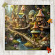 Quebra-cabeça com uma pintura de uma cena de fantasia com cogumelos, fadas e gnomos bonitos como um conto de fadas.
