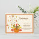 Comece a comemoração do Dia de Ação de Graças com nosso convite do Dia de Ação de Graças apresentando um giro de peru giro em um fundo marrom com um quadro duplo. Personalize com você as informações da festa de Ação de Graças e você está pronto para ir!