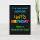Um Cartão de Aniversário colorido para um Godson, com letras brilhantemente coloridas num fundo preto, a palavra "feliz" em amarelo e a palavra "aniversário" em cores do arco-íris.