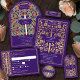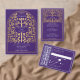 Celebrate your special day with these royal medieval sword wedding RSVP cards against a purple background. You can customize this further by clicking on the "PERSONALIZE" button. PLEASE NOTE: The gold on this item is NOT real foil and is printed in flat colors