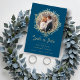 Gold Snowflakes Wedding Engagement Round Photo Save the Date Card.