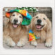 Sentimento groovy? Este mousepad caracteriza dois cães do golden retriever fora, sorrindo e vestindo-se vestindo a roupa tingido em nó.