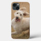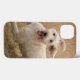 Goldendoodle, língua para fora, orelhas a flutuar, corre através da grama alta.