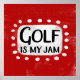 "Golf Is My Jam" é um design de texto divertido com uma forma de sotaque branca cercado por pontos brancos texturizados.