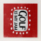 "Golf Is My Jam" é um design de texto divertido com uma forma de sotaque branca cercado por pontos brancos texturizados.
