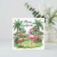 Celebrar os feriados ao estilo da Flórida com este cartão de Natal Golf! Apresentando um flamingo cor-de-rosa vestindo um chapéu de Papai Noel em um exuberante campo de golfe verde da Flórida, este design lúdico inclui ornamentos festivos, palmeiras decoradas com luzes de férias e garras ao longo dos corredores. O texto escrito à mão adiciona encanto e alegria. Perfeito para amantes de golfe, entusiastas da Flórida, ou qualquer pessoa que goste de um tema de golfe divertido. para treinador, instrutor, professor, amigos, mãe, pai, namorada/namorado, colega de trabalho, anfitriã, vizinha, ele/ela, casais, avós, chefe, amigo, família, sogra, esquadrão, equipe,
