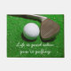 Golf Life é bom com bola de golfe no tapete de porta verde